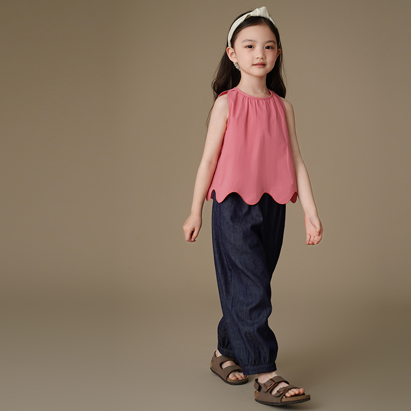 哈齿童装儿童上衣韩版玫粉色全棉背心女童无袖衬衫中大童夏装新款