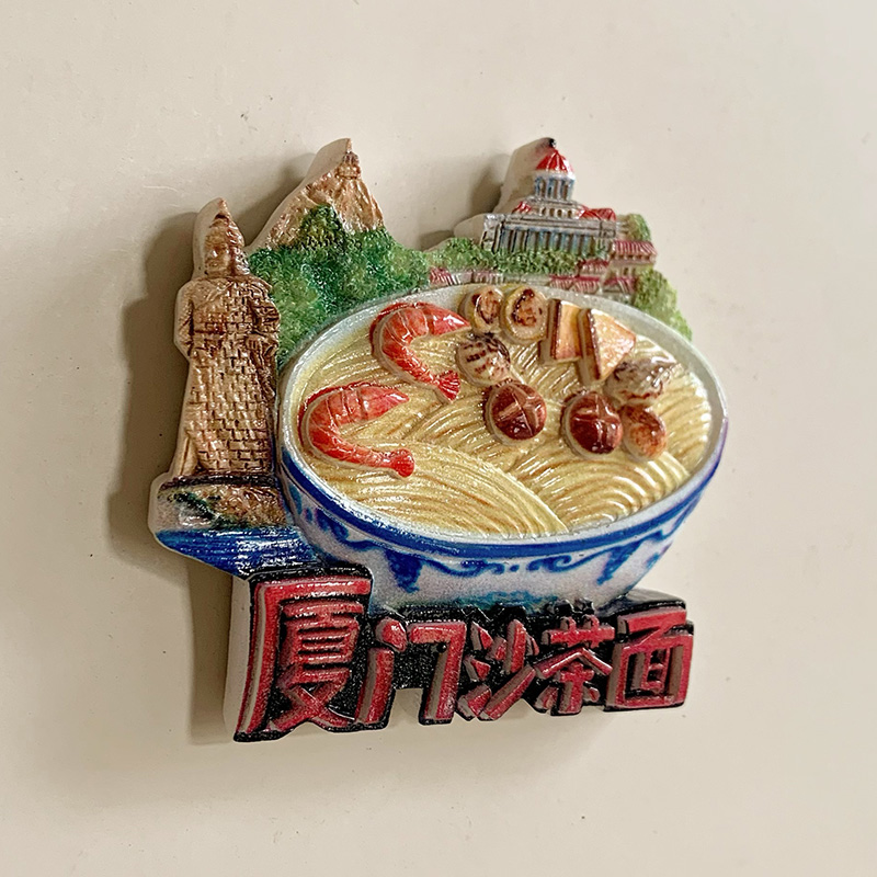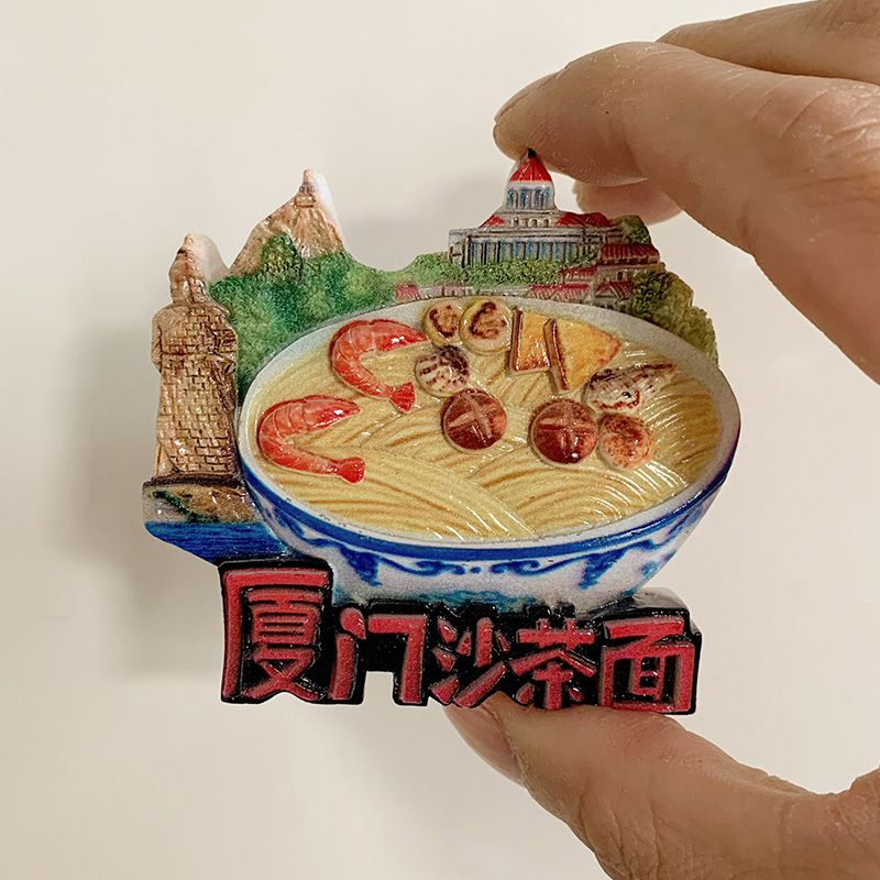 厦门沙茶面立体彩绘冰箱贴食玩磁贴中国美食城市旅游纪念品礼物