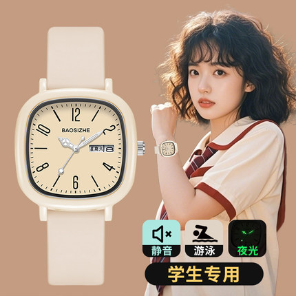 双日历手表女款初中初高中学生防水机械只看时间考试专用儿童女孩