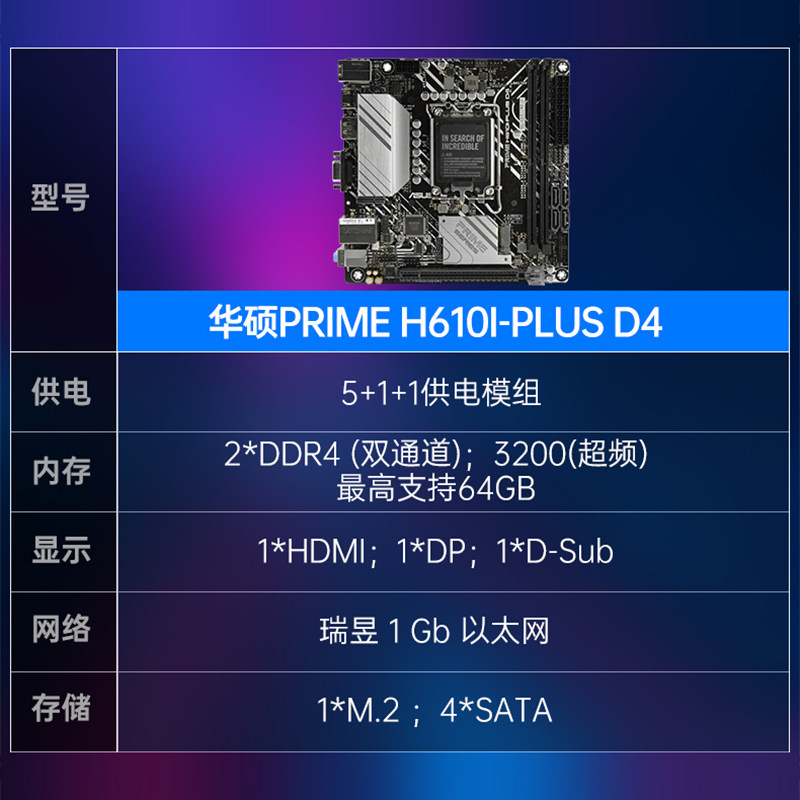 华硕 h610i 台式机mini迷你ITX主板12100f124001310014400板u套装