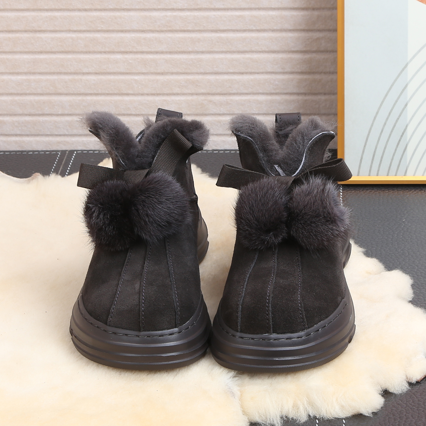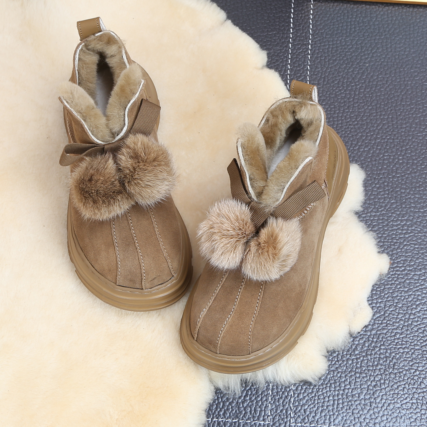 牛皮纯羊毛防滑厚底保暖大棉鞋短筒2024新款加绒雪地靴女皮毛一体