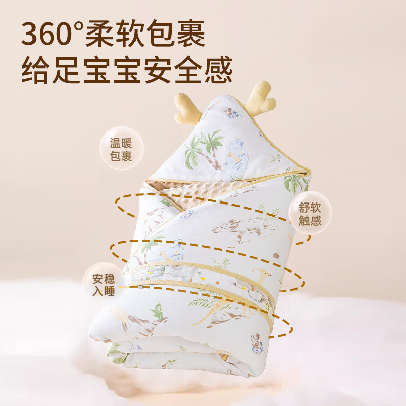 新生包被婴儿初生抱被纯棉春秋冬季包巾被子宝宝产房加厚豆豆绒款