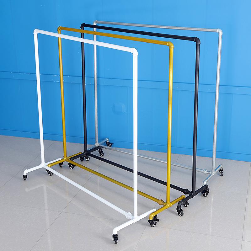 c服装店展示架水管龙814门架合落地衣架s单杠带轮铁艺晾衣服组地