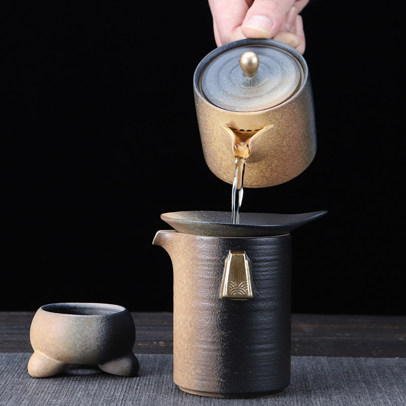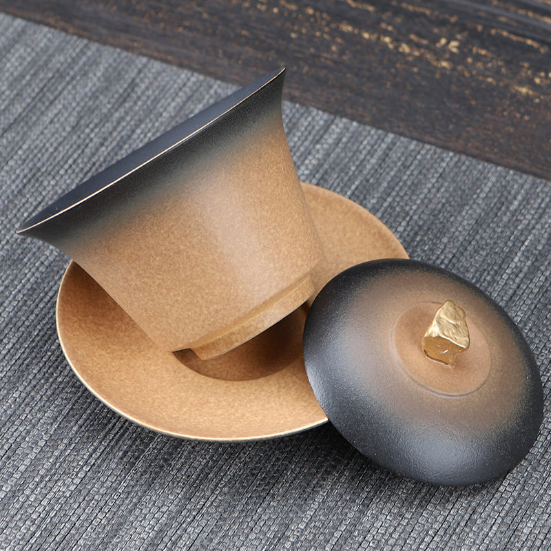 陶明堂点金渐变功夫茶具茶壶三才盖碗公道杯过滤品茗杯六君子茶洗