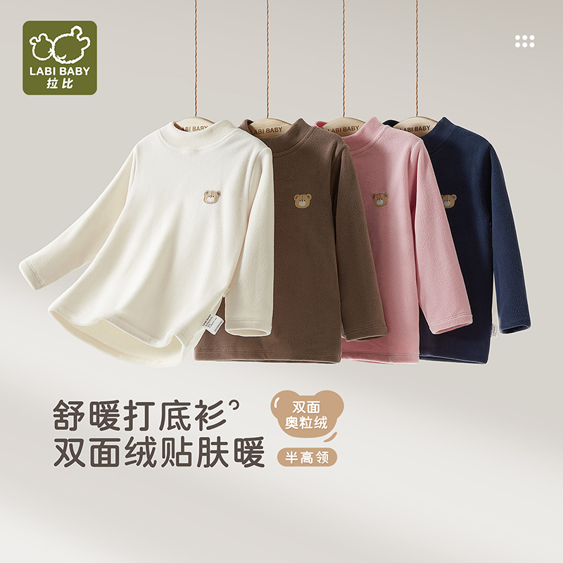 拉比儿童加绒半高领衣2025秋冬新款男女童长袖保暖外穿打底衫上衣