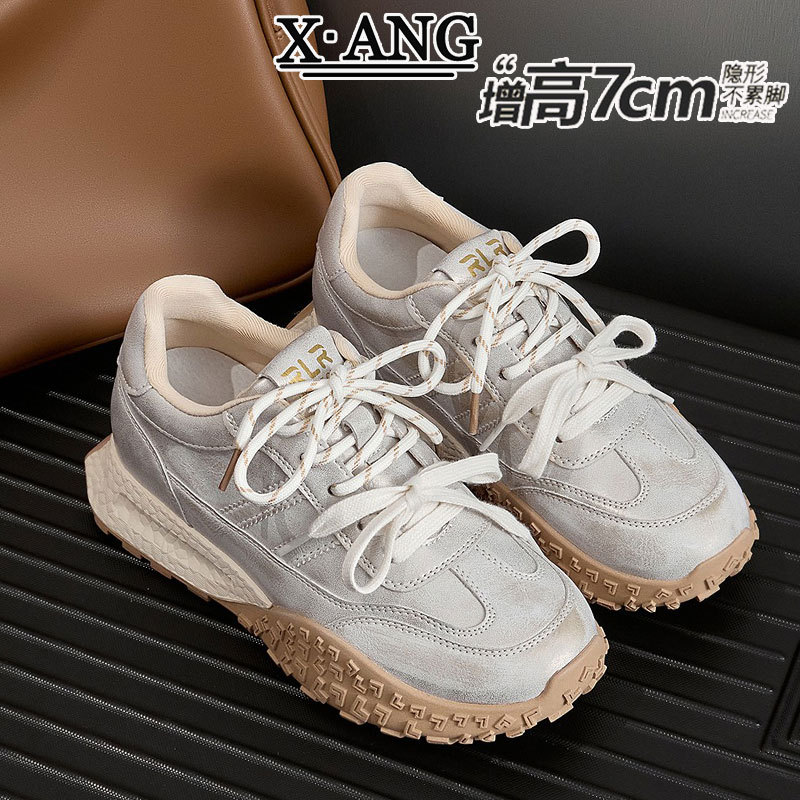 日本品质小个子厚底7cm内增高女鞋真皮德训鞋2025春季新款休闲老