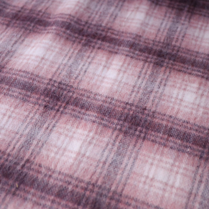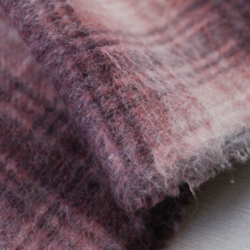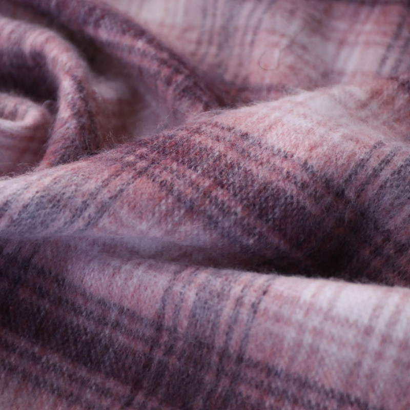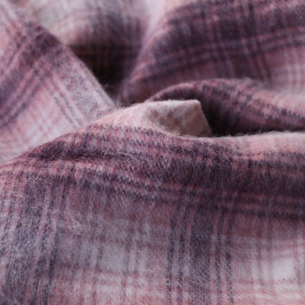 意大利进口复古桃粉暗红白杂色格纹编织顺毛羊绒羊毛设计师布料