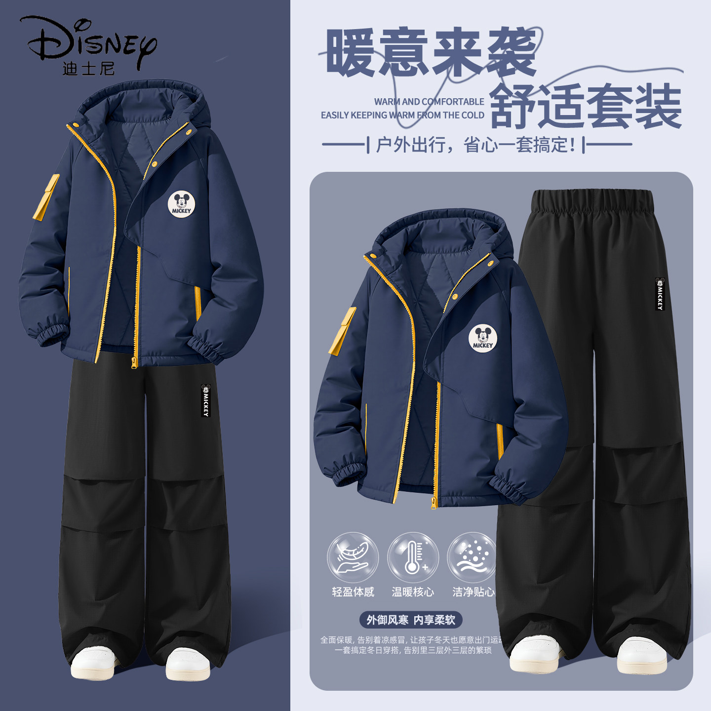 迪士尼男童冬装套装保暖棉服加厚裤子2025新款小男孩冬季儿童衣服