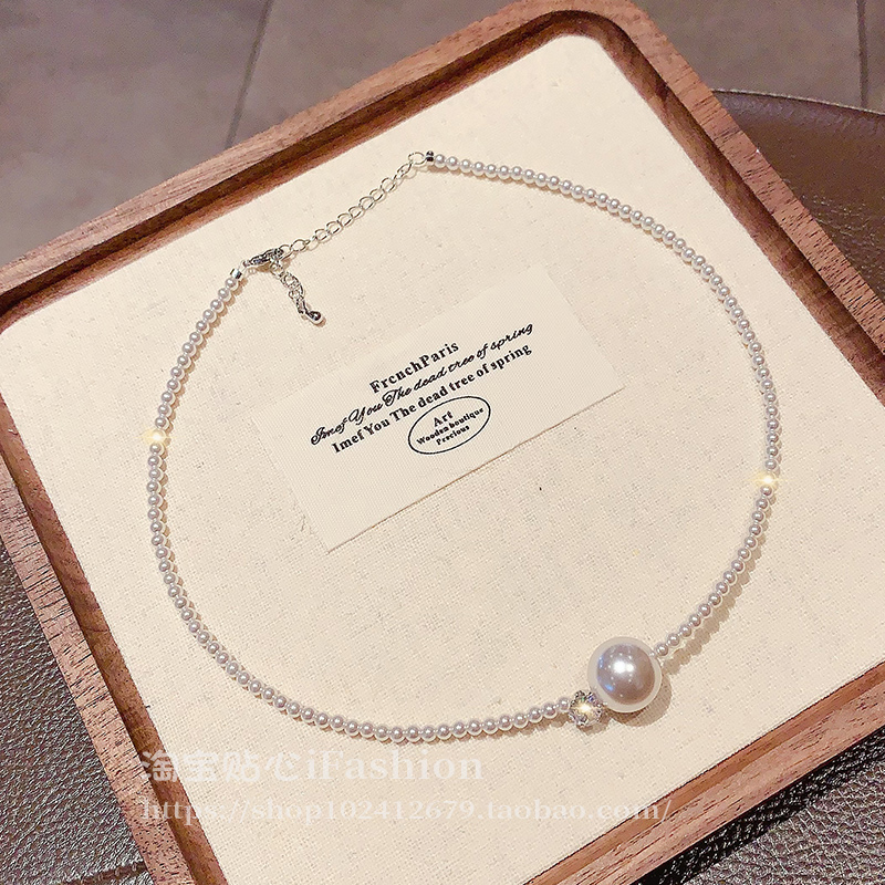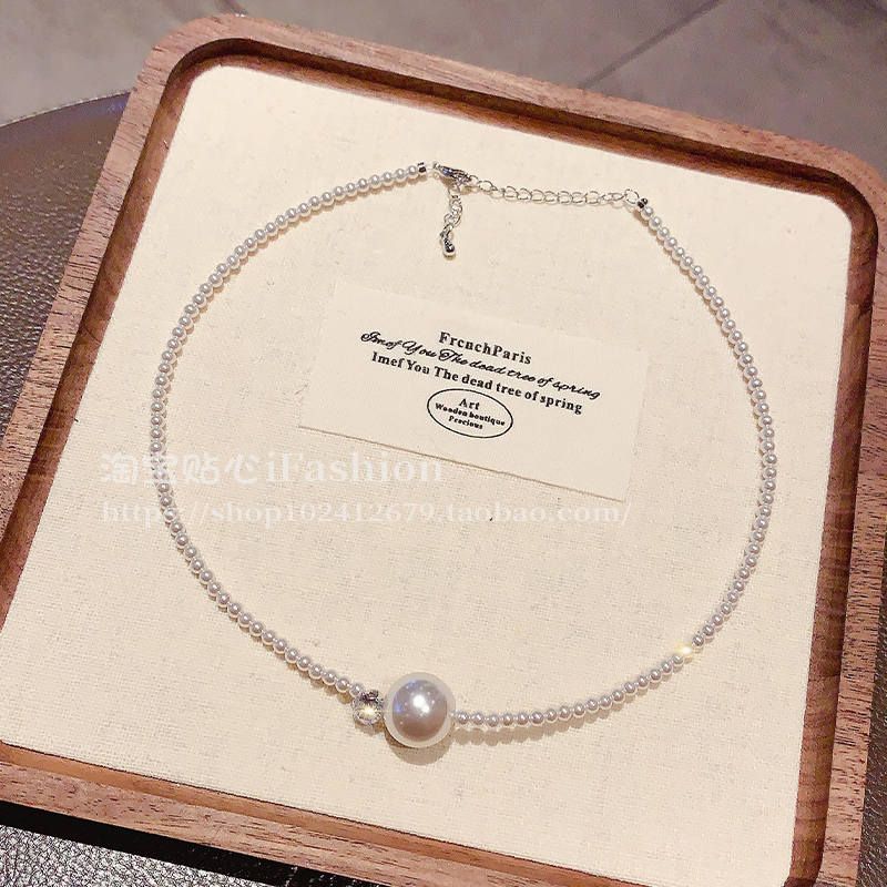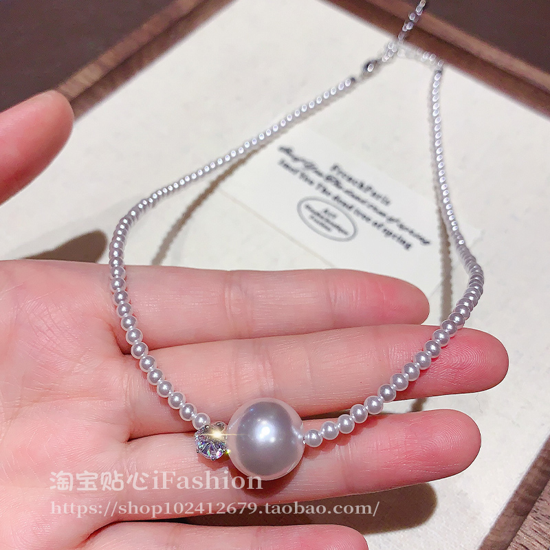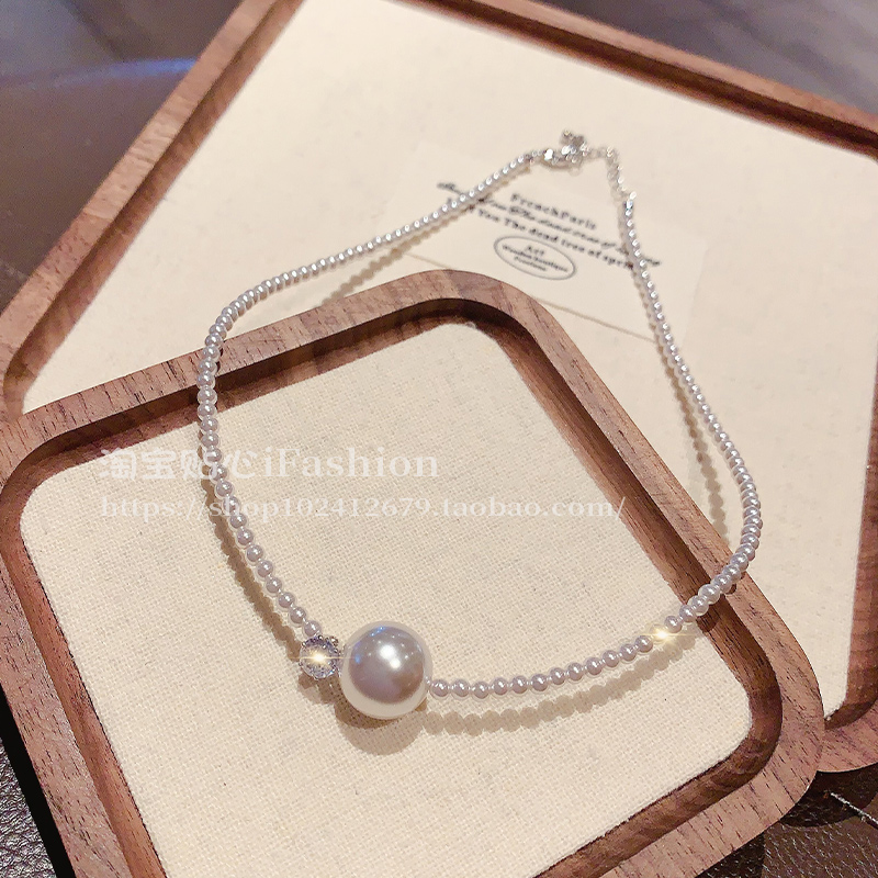 韩国圆珠镶钻珍珠项链女轻奢小众设计感锁骨链2025新款爆款颈链