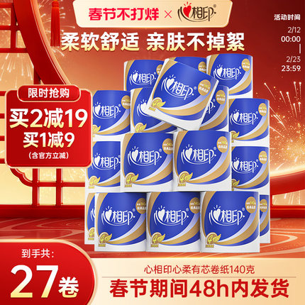 心相印纸巾有芯27卷纸家用实惠装