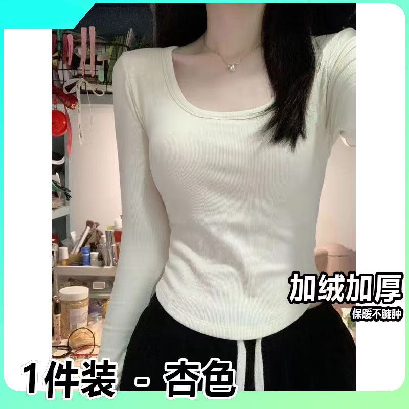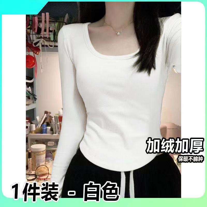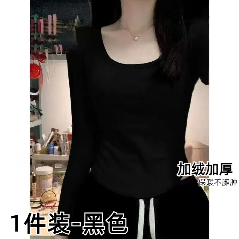 秋冬加绒加厚德绒保暖正肩长袖T恤女修身大码时尚内搭打底衫上衣D