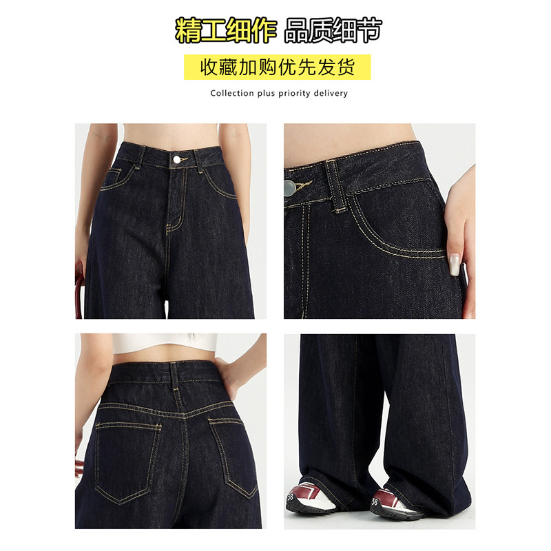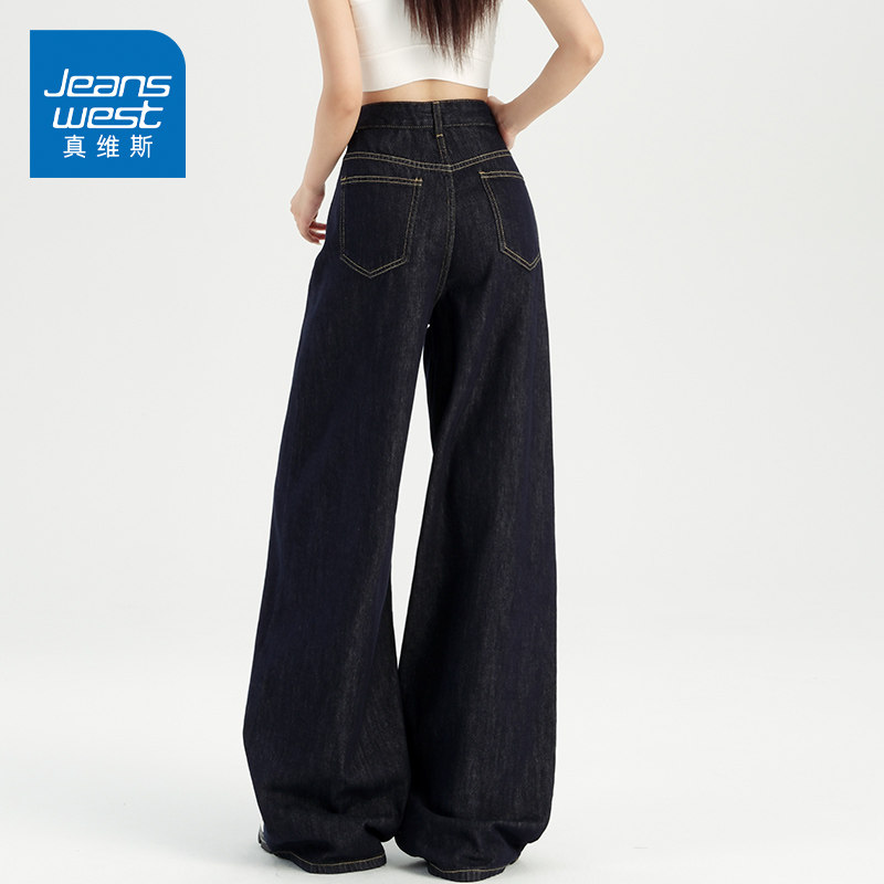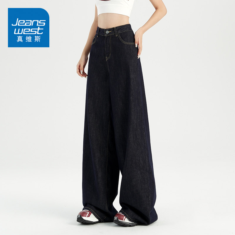 KZ真维斯阔腿宽松拖地长裤子女士高腰牛仔裤春秋季2025年新款春装