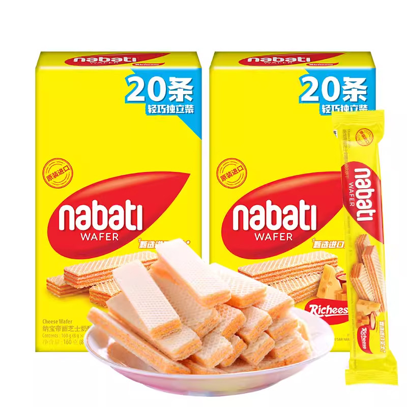 过年印尼进口丽芝士奶酪威化夹心饼干160g年货网红零食品纳宝帝