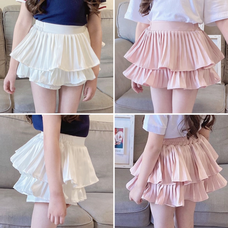 女童甜美蓬蓬裙夏季新韩版女孩半身裙复古蛋糕短裙白色泡泡百褶裙