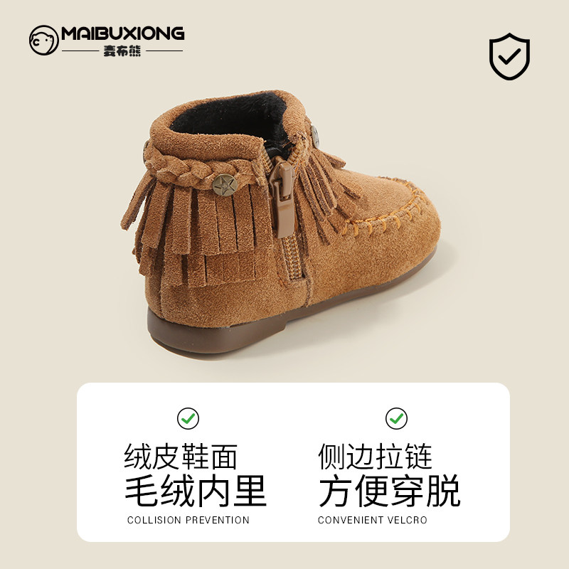 麦布熊女童婴儿软底学步鞋秋冬季儿童鞋子加绒短靴1一2岁女宝宝鞋