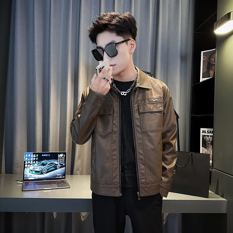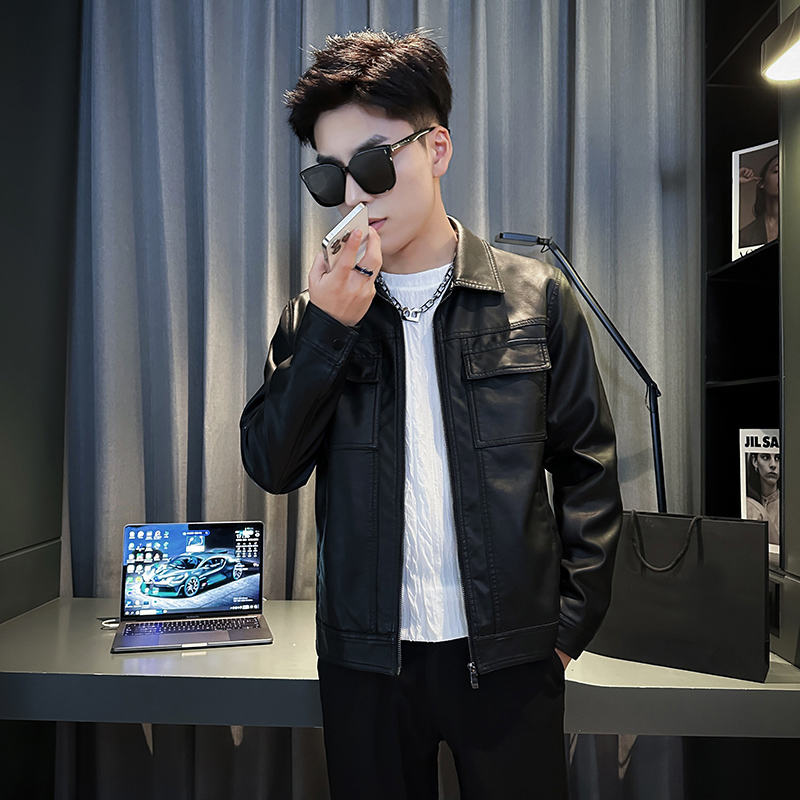 2025黑色男士皮衣修身短款皮夹克休闲秋季薄外套翻领商务小码外套