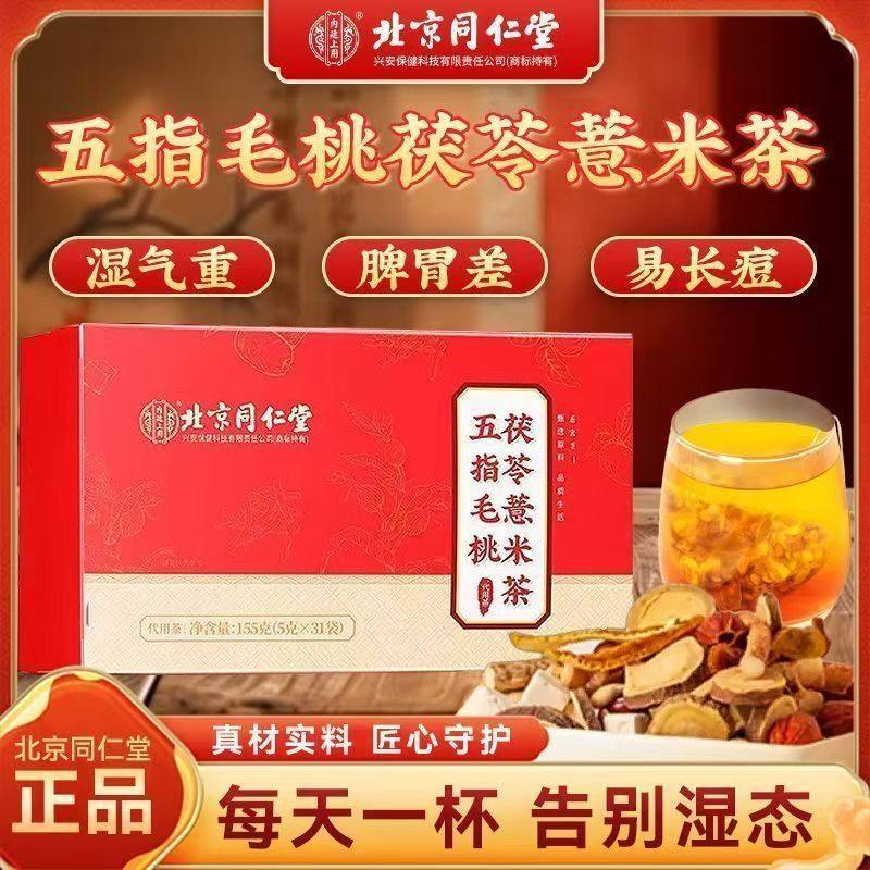 北京同仁堂五指毛桃茯苓薏米茶红豆祛湿茶熬夜健脾养胃养生茶清火去湿气排毒排体内湿寒湿气重