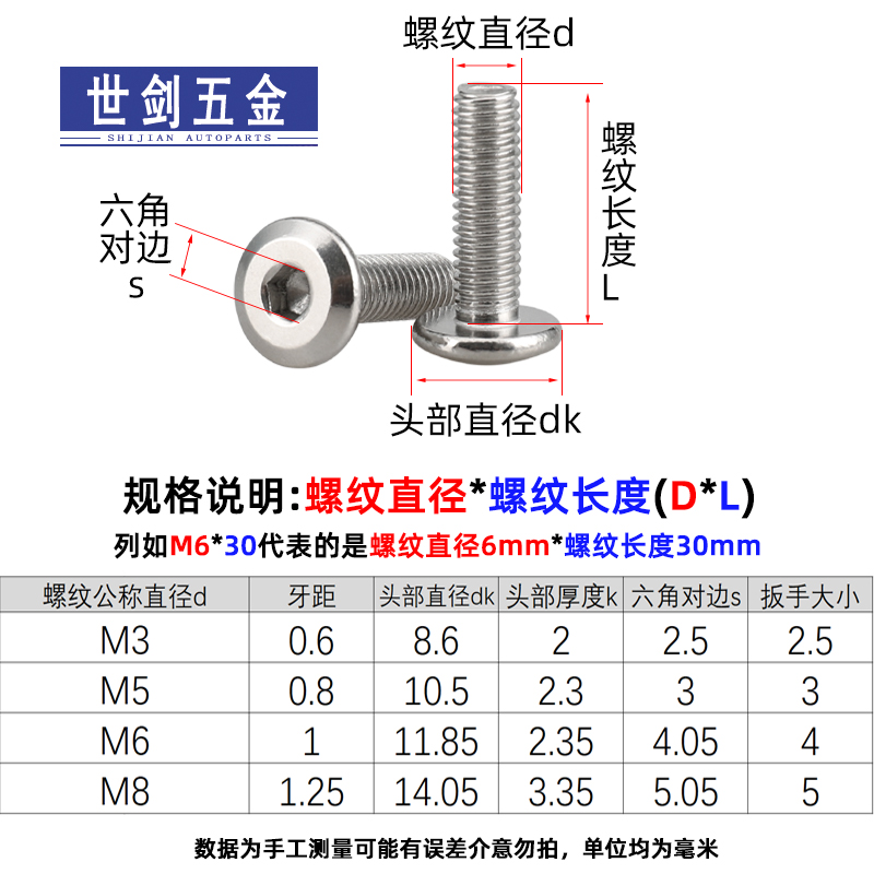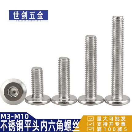 304不锈钢倒边内六角螺丝大平头螺钉斜边家具螺栓M2M3M4M5M6M8M12