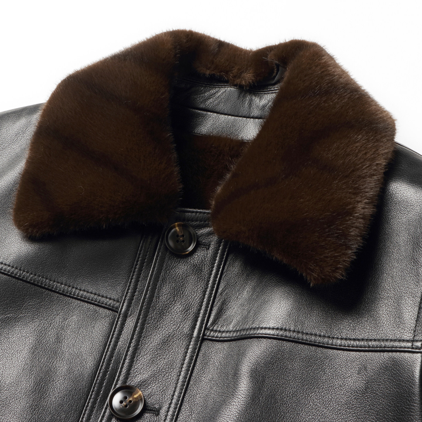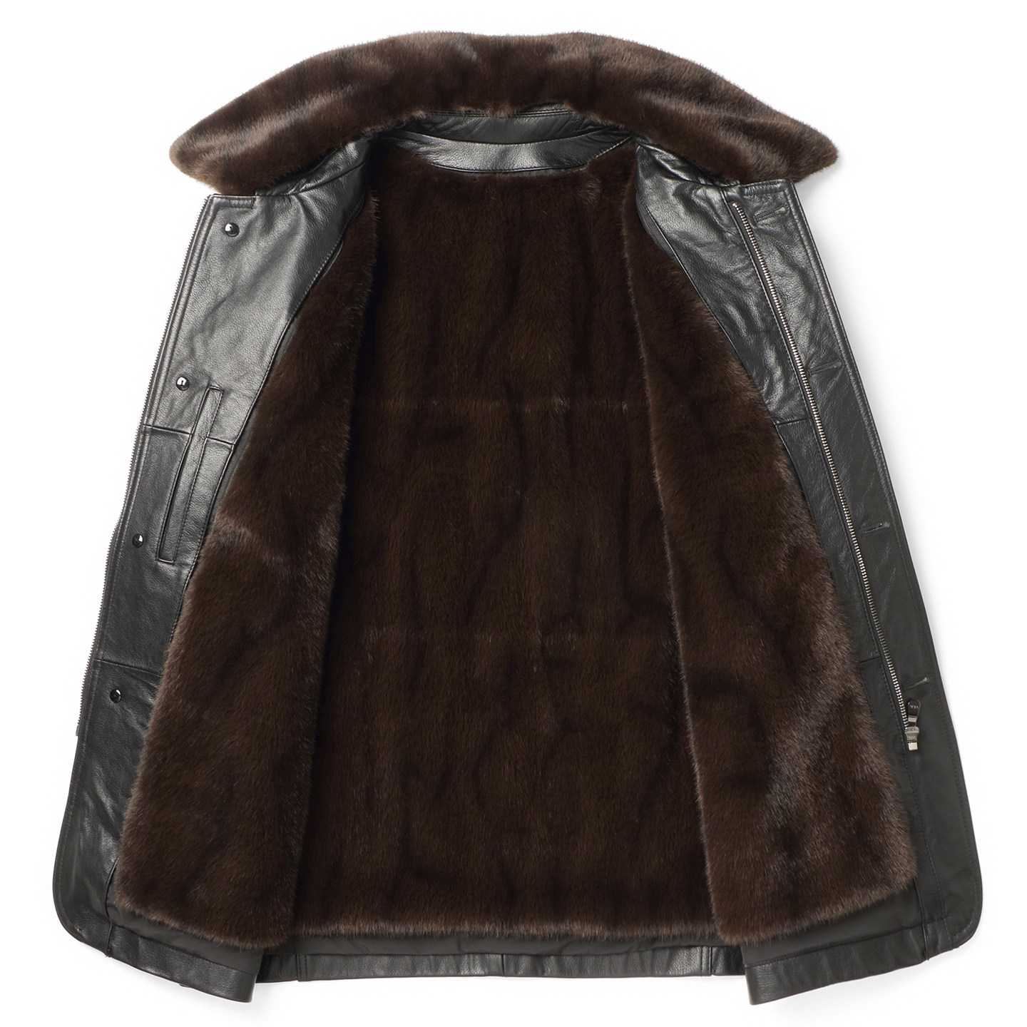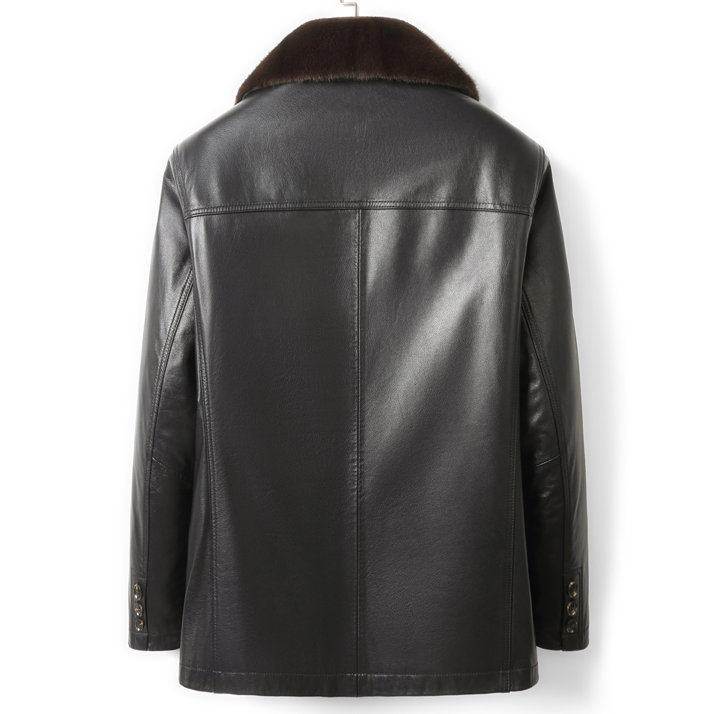 海宁真皮皮衣男士中老年头层牛皮翻领皮毛一体脱卸内胆外套爸爸装