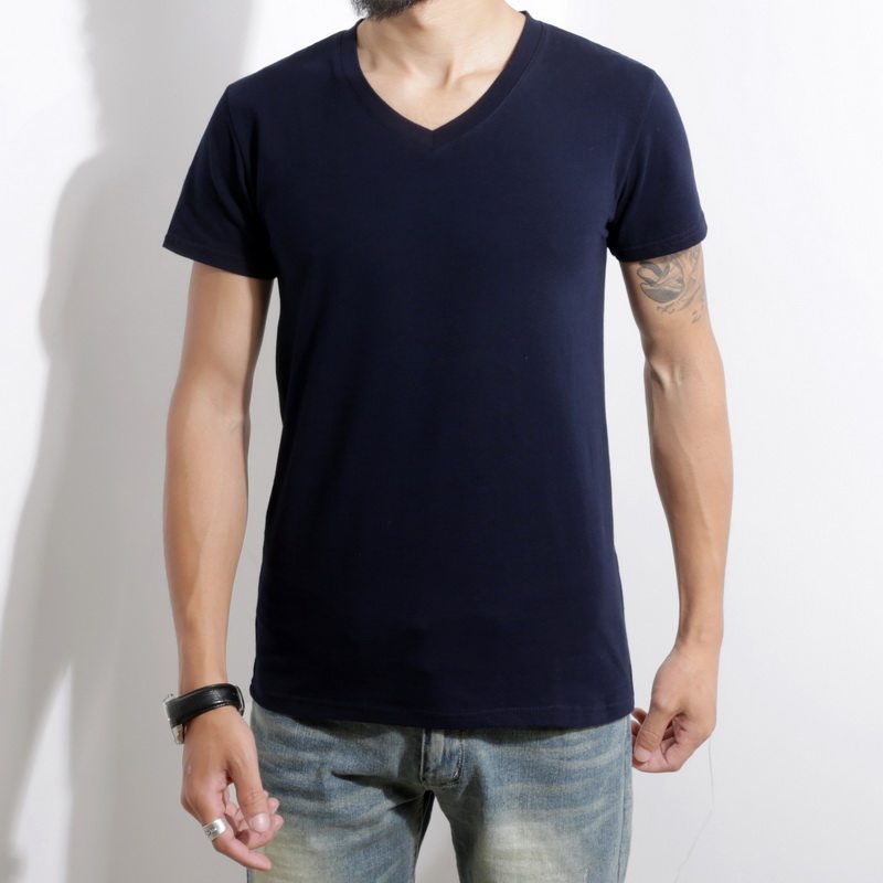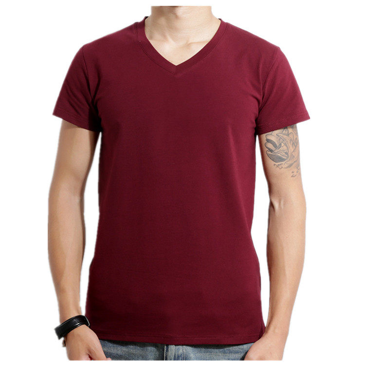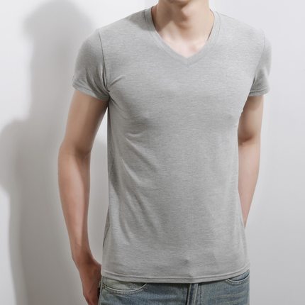 春新款夏季男士LYCRA莱卡棉纯色短袖V领T恤韩版修身打底衫