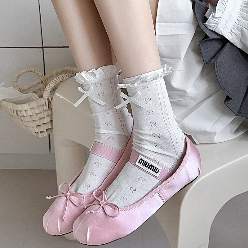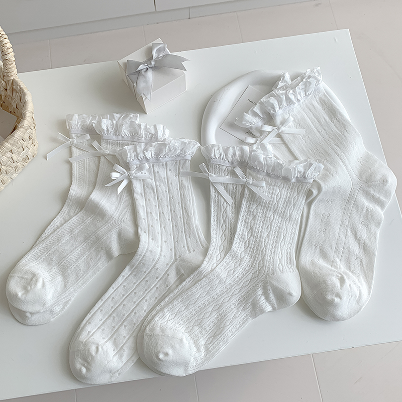 白色花边蝴蝶结芭蕾风日系中筒袜