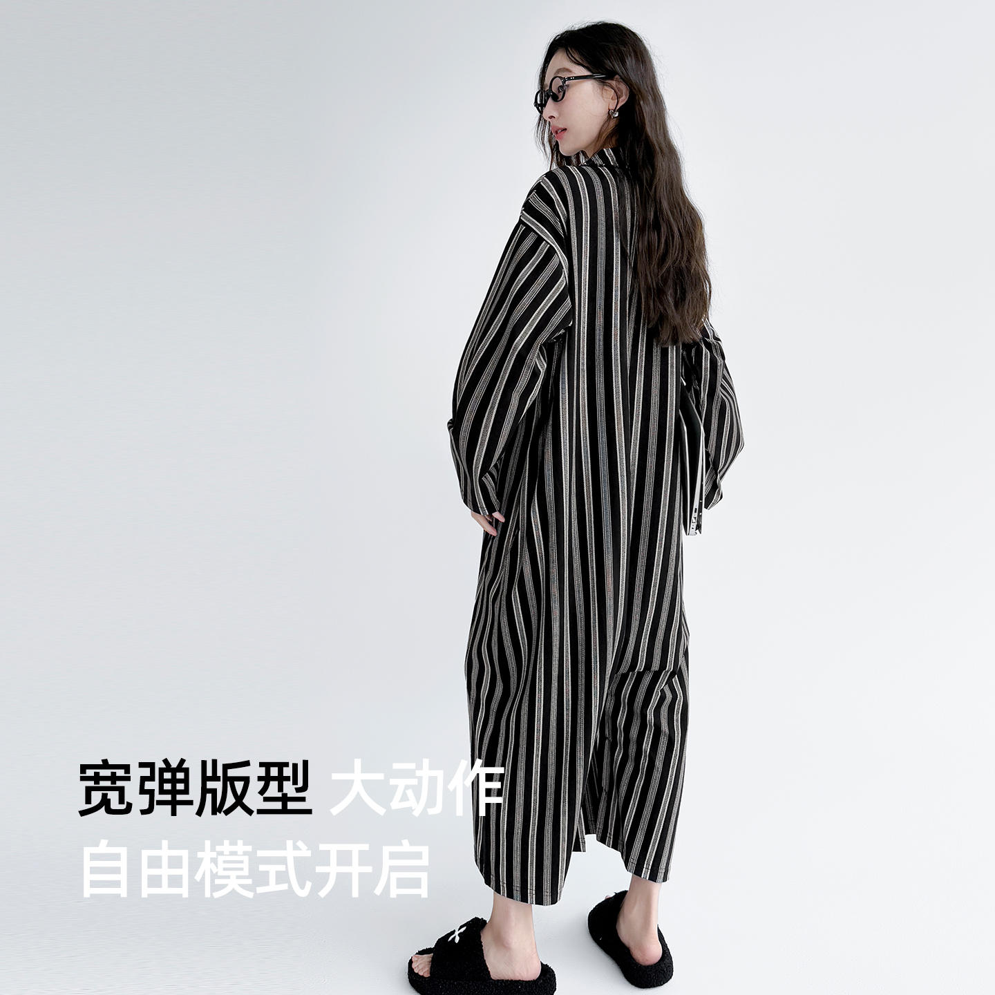 helloyashute连体睡衣女秋带胸垫睡裙高级感条纹简约可外穿连衣裙