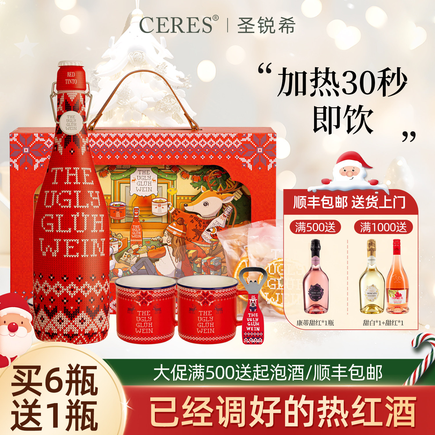 小丑派对热红酒雷司令晚收圣诞树甜白葡萄酒微醺果酒圣诞礼物礼盒
