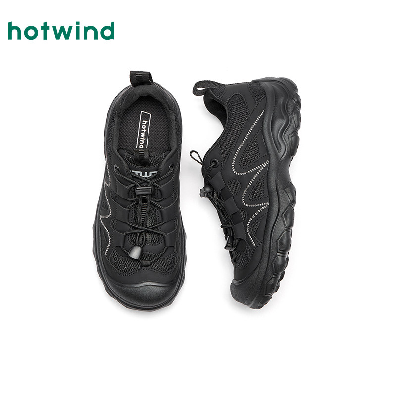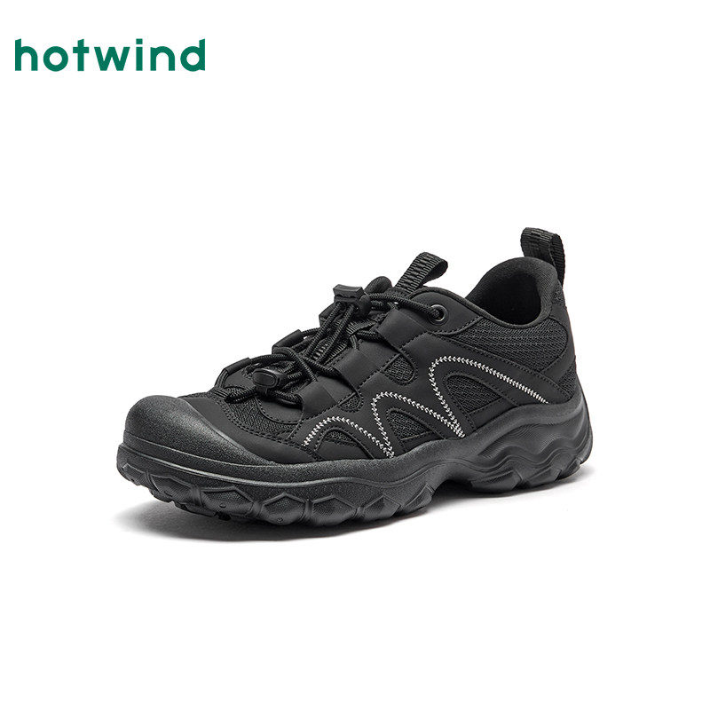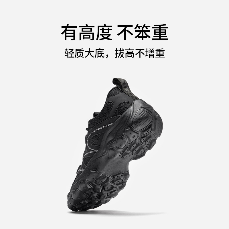 热风户外休闲鞋女款2026年春季新款厚底百搭登山鞋黑色轻便女鞋子