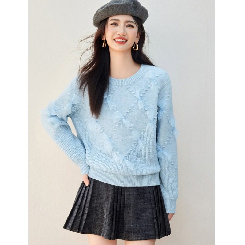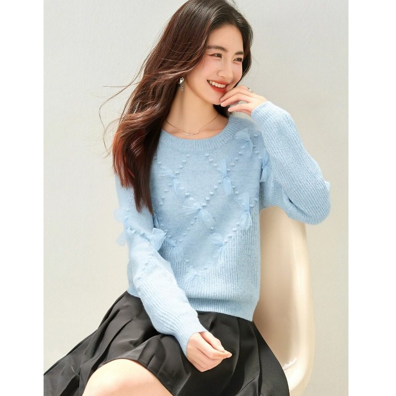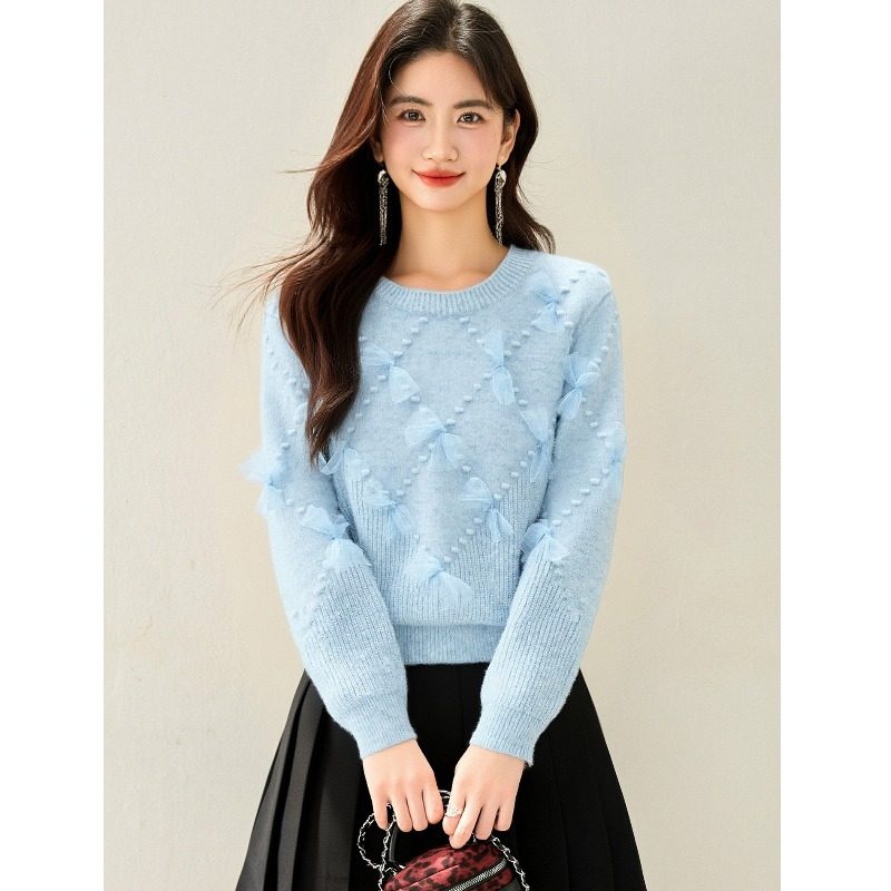 毛衣女秋冬外穿内搭蝴蝶结针织衫