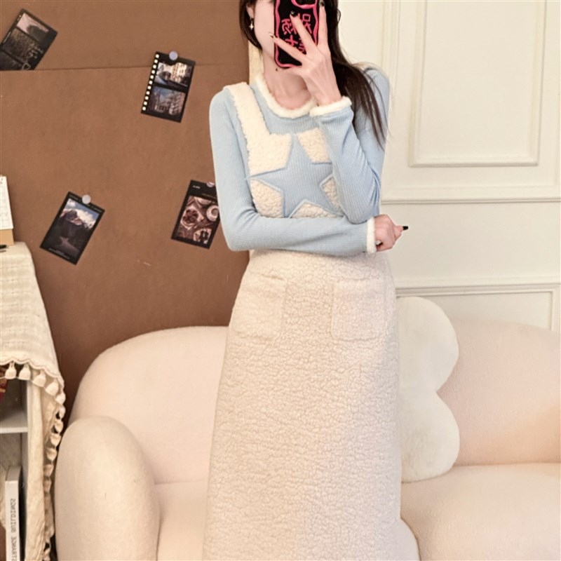 织物猪 气泡苏打 少女感毛绒背带裙外套+长裙T恤女加厚秋冬套装