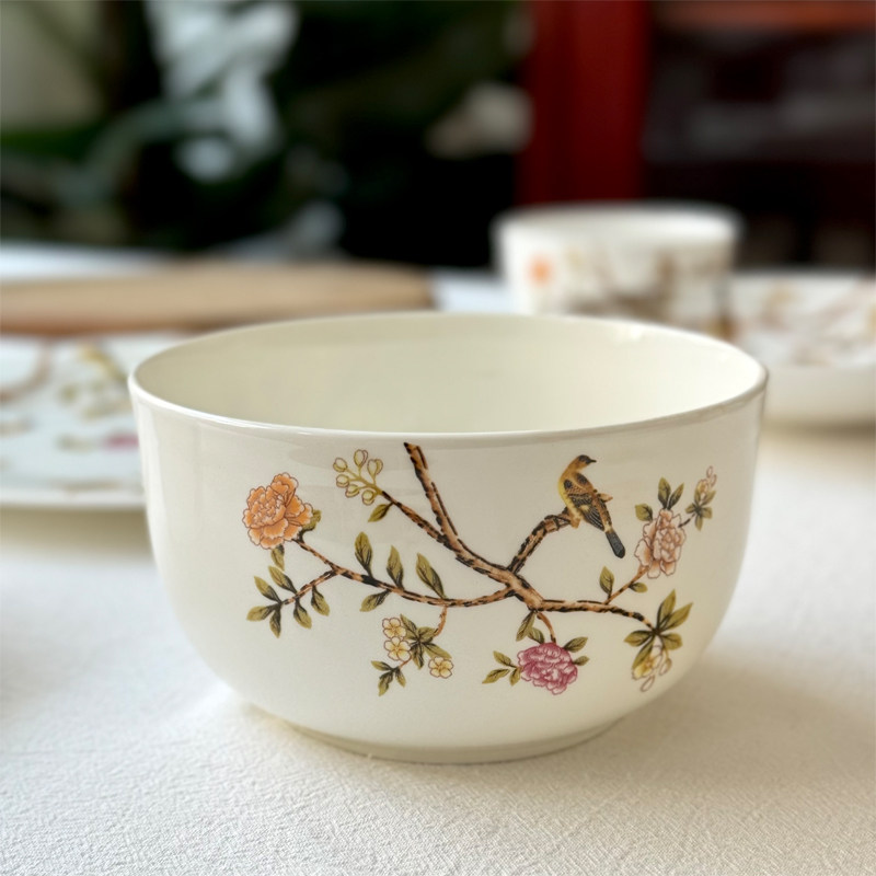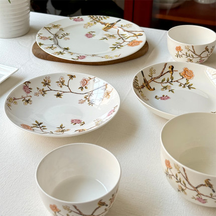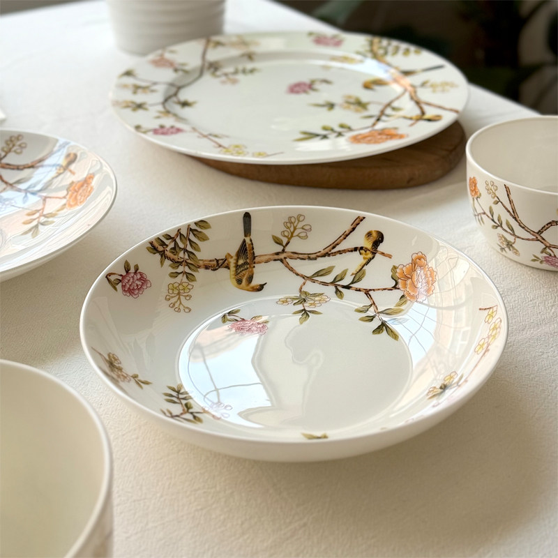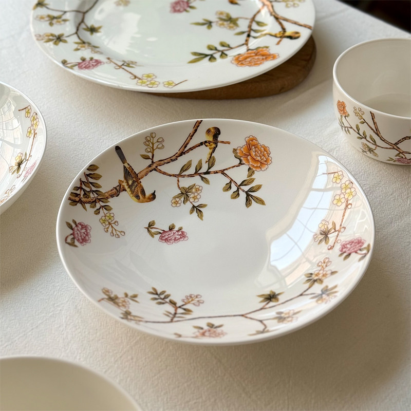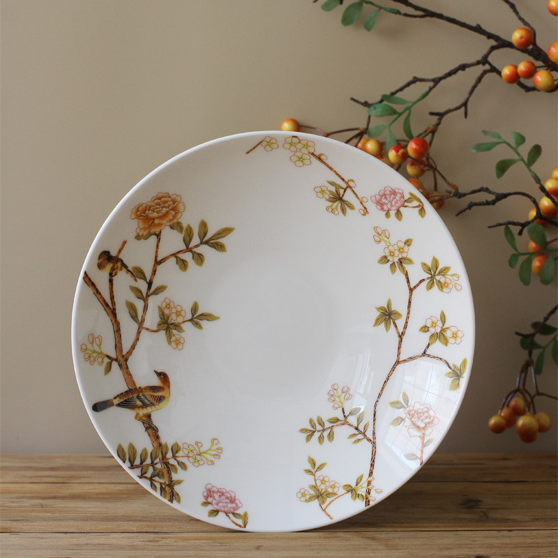北府 新中式晨风骨瓷盘碗汤盘菜盘干果盘摆盘花鸟陶瓷餐具可微波