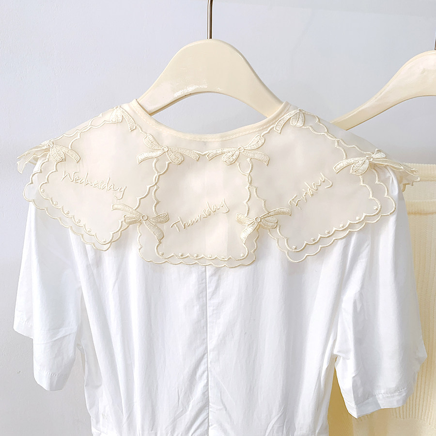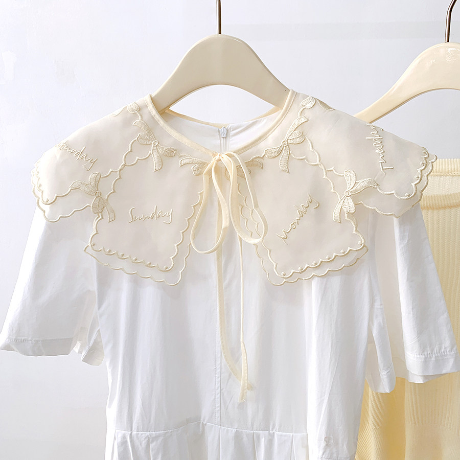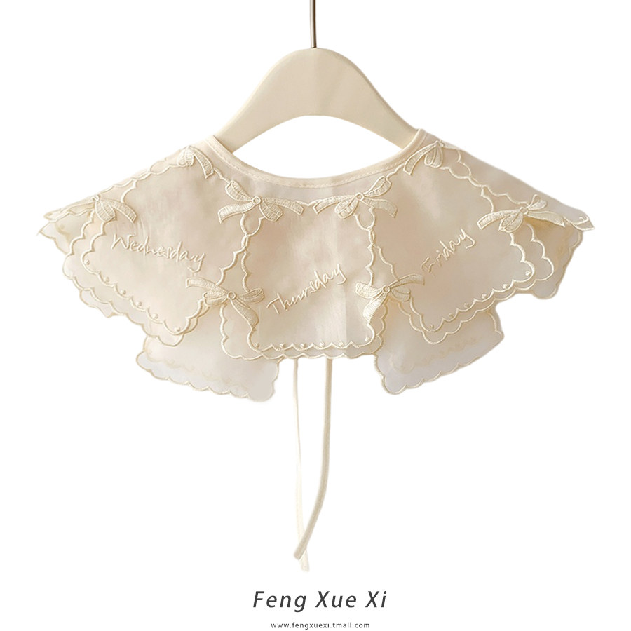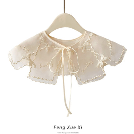 杏色字母春夏雪纺薄款外搭假领子洋气小披肩女士装饰衣领花边围巾