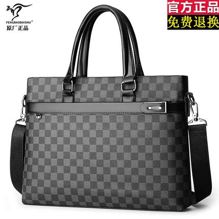 猎鼠男士公文包2025新款大容量商务休闲男背包时尚潮流格子手提包