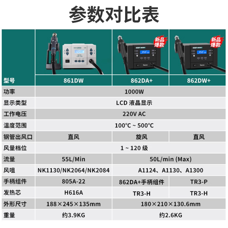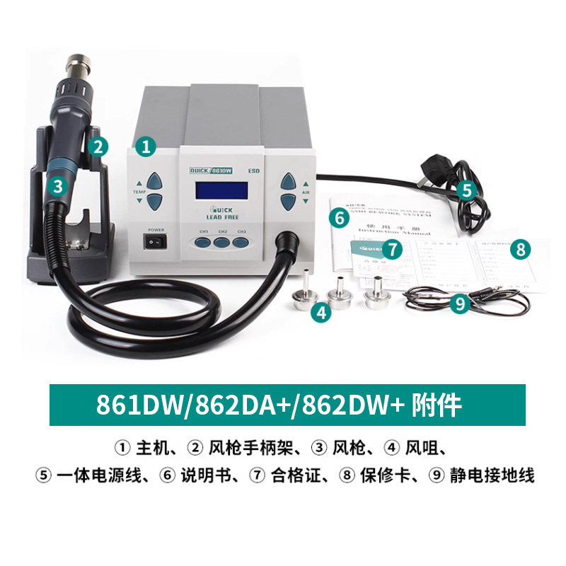 QUICK快克861DW热风枪数显高频可调温热门手机维修烙铁热风拆焊台