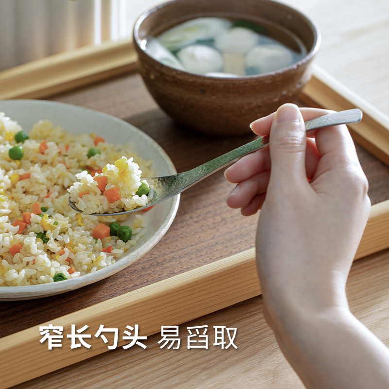 霜山日本进口304不锈钢餐勺日式和风锤目纹勺子吃饭勺咖喱勺调羹