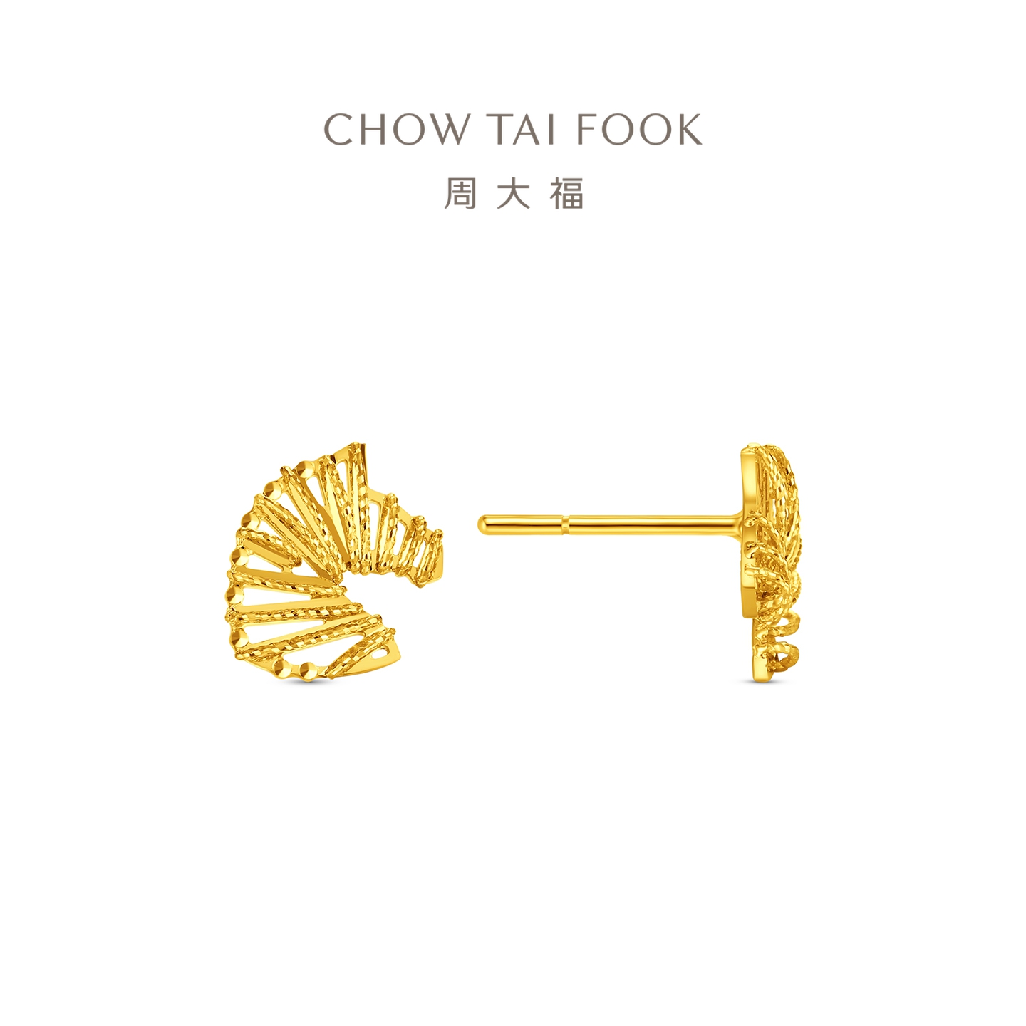 新款周大福马年生肖绕线环绕马头足金黄金耳环计价女EOF1947送礼