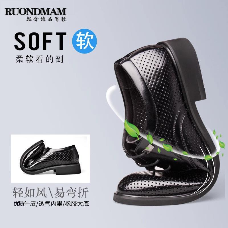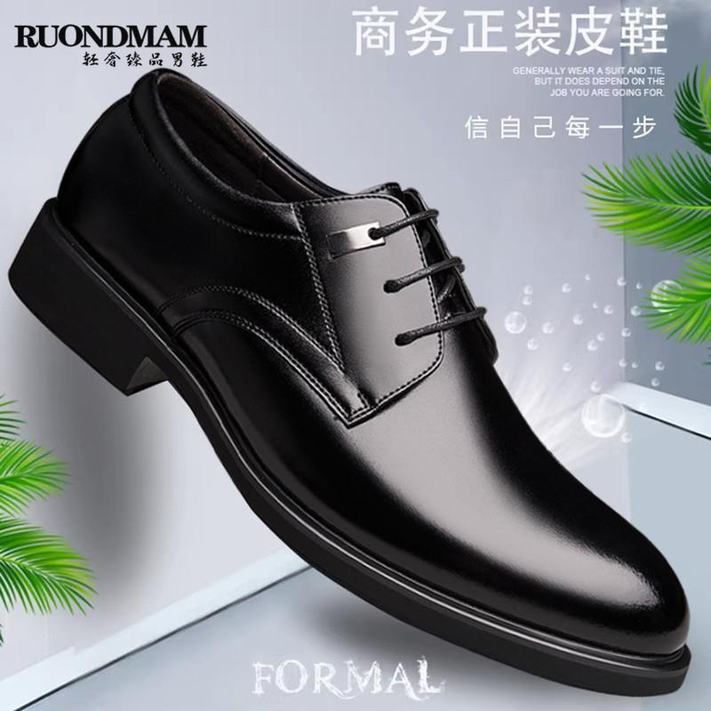 RUONDMAM皮鞋男士真皮透气内增高正装商务休闲新郎结婚鞋大码男鞋