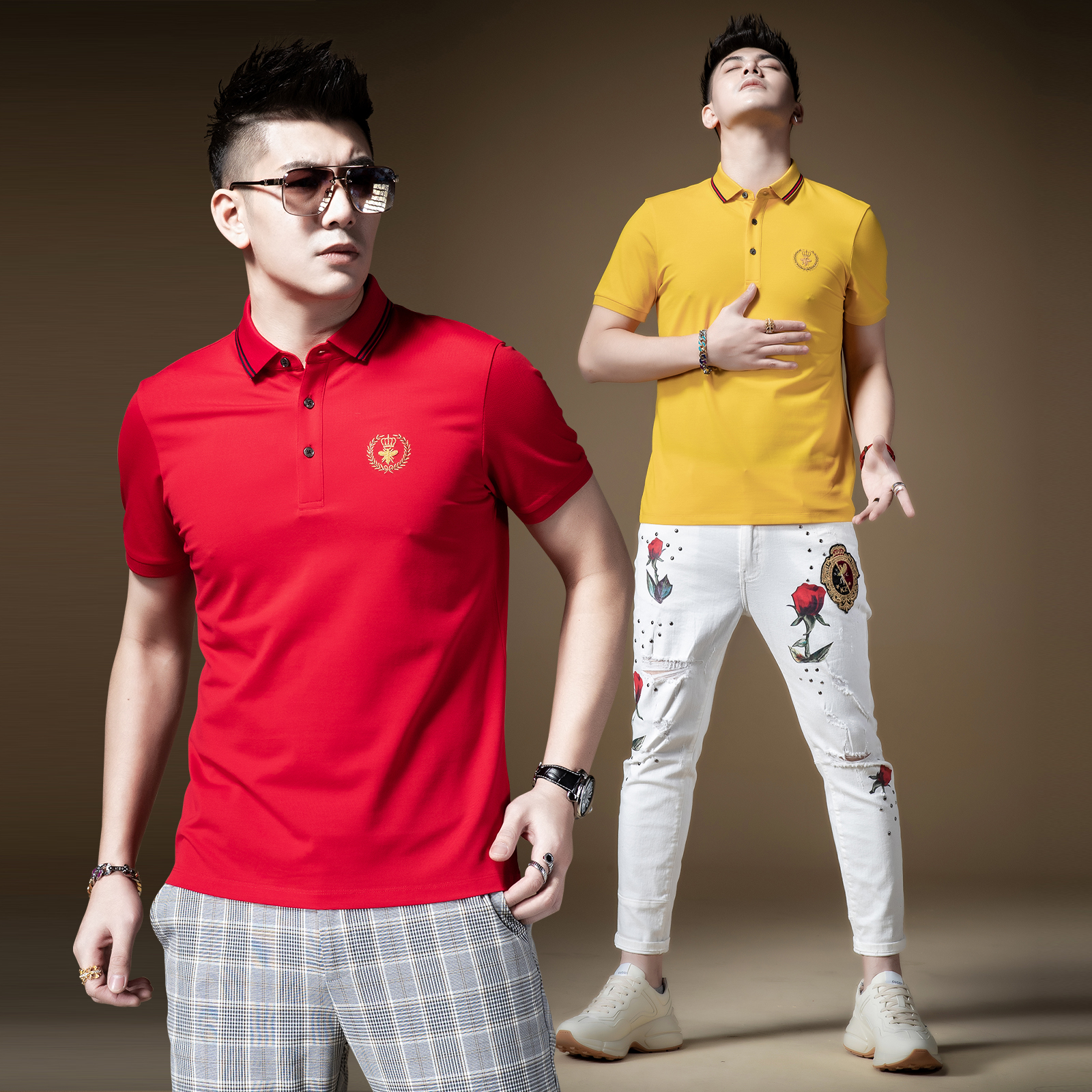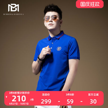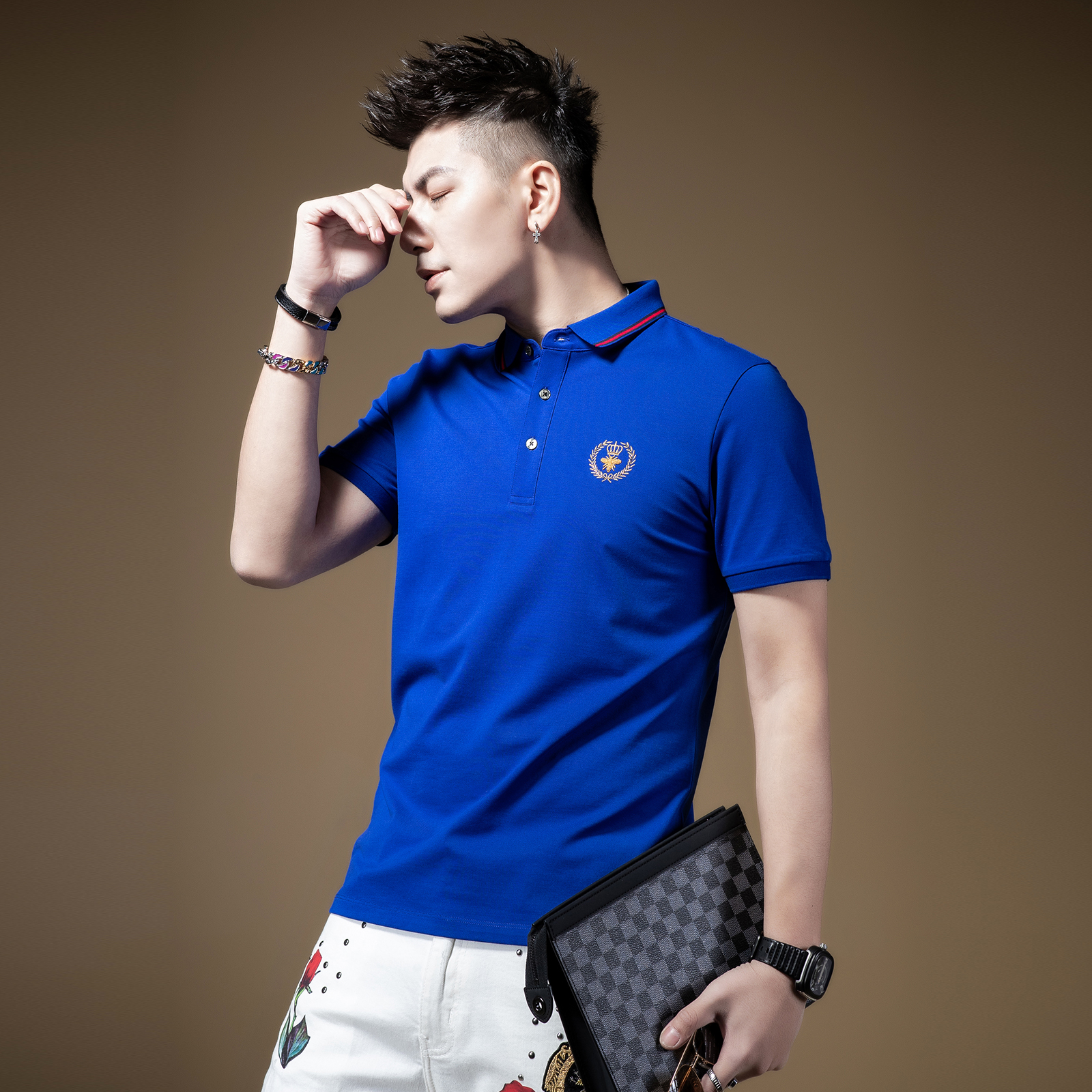 BM高端刺绣小蜜蜂t恤男短袖条纹翻领polo衫男潮牌时尚英伦风上衣