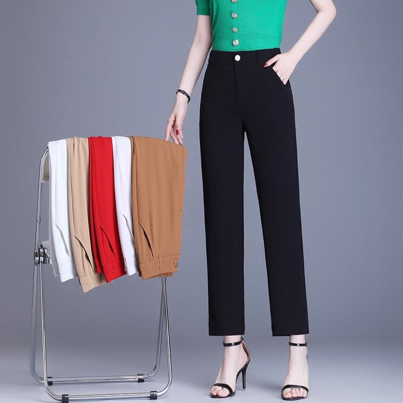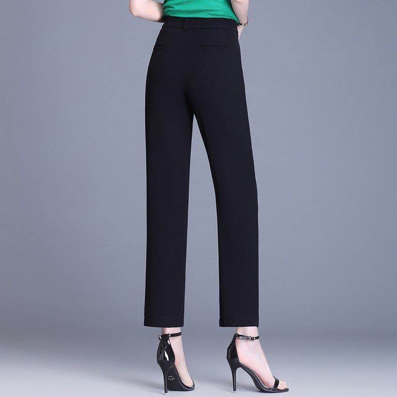 垂顺坠感小脚西裤春夏薄小直筒裤九分裤大码职业女裤后腰松紧高腰