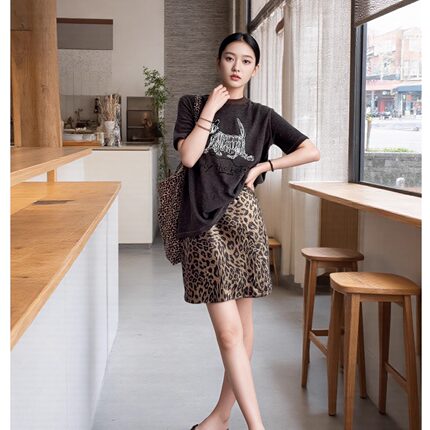2025年美式复古豹纹短裙女夏季新款气质百搭高腰薄款A字半身裙