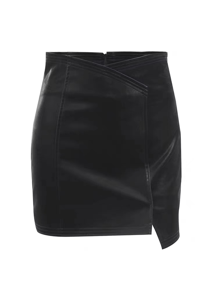 大码胖妹妹不规则设计感皮裙女春秋冬新款高腰显瘦包臀A字半身裙