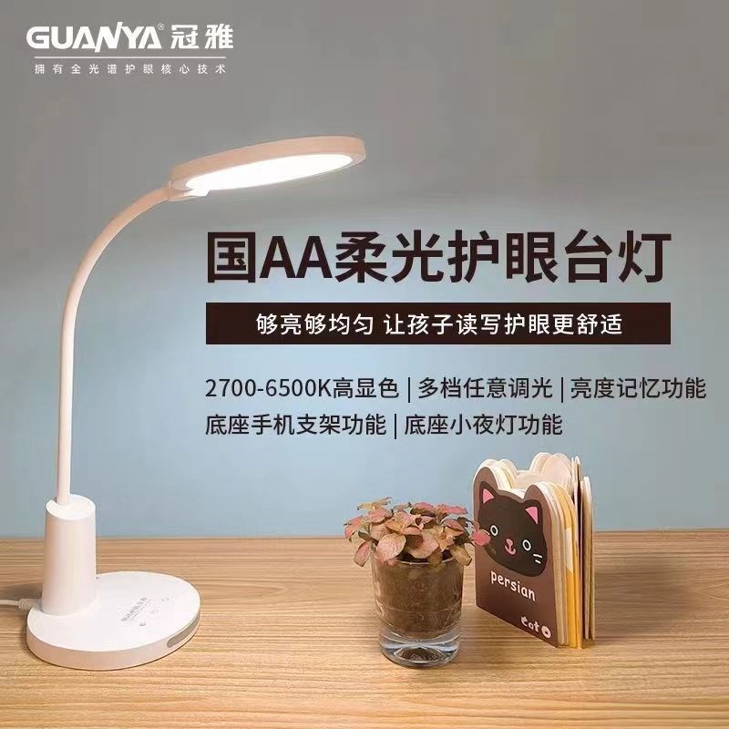 冠雅LED学习专用国AA柔光学生读写办公书桌调光带小夜灯护眼台灯