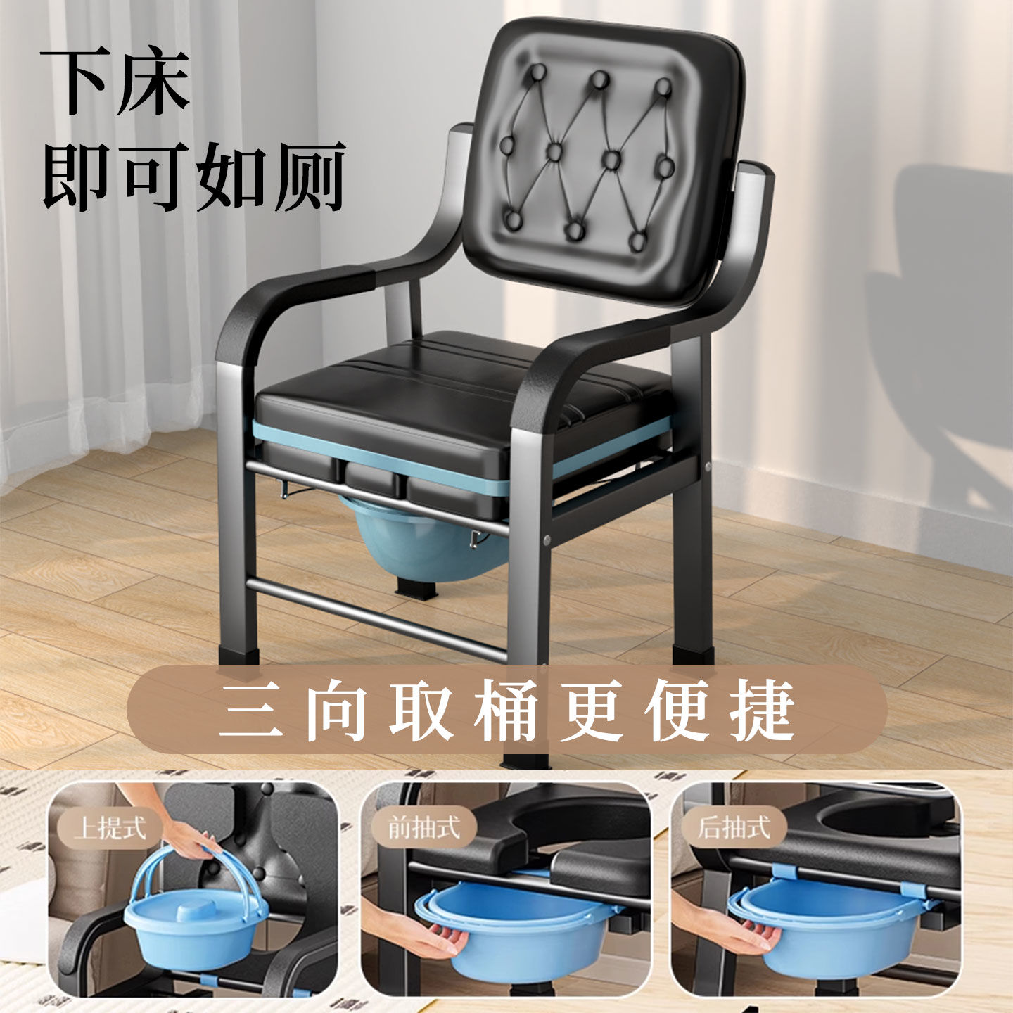 移动坐便器老人坐便椅孕妇防滑马桶加固高度可调老人床边坐便椅