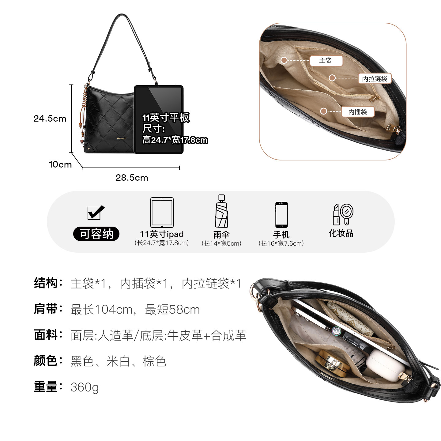 稻草人包包女式2025新款松弛感腋下包通勤单肩斜挎包懒惰风通勤包