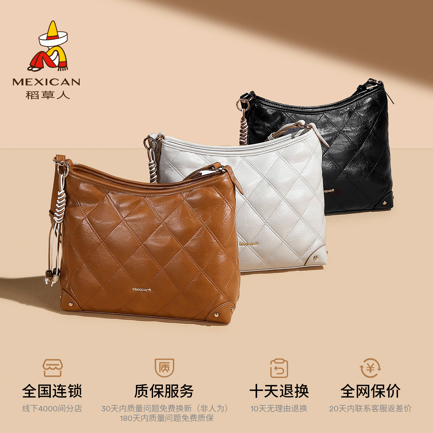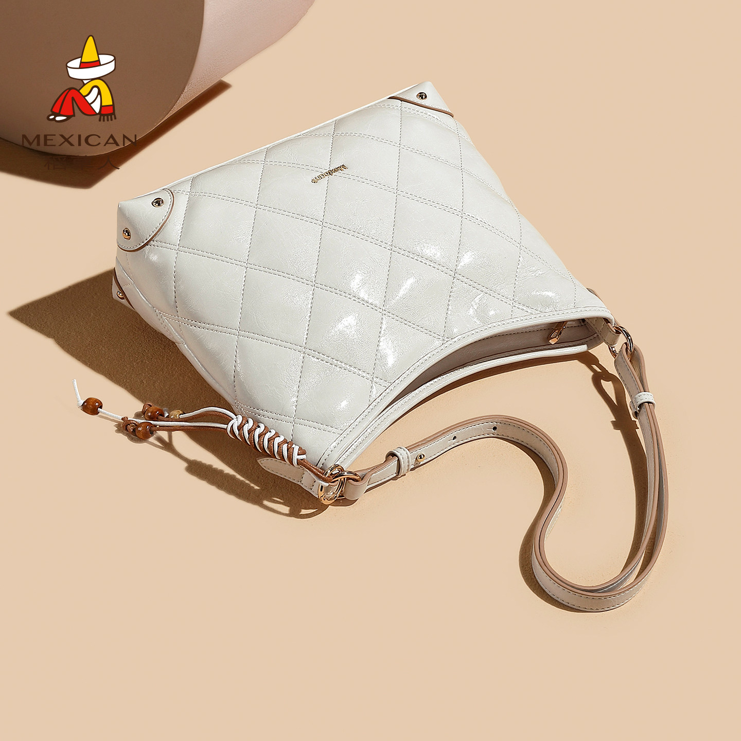 稻草人包包大容量时尚菱格水桶包