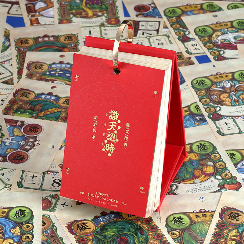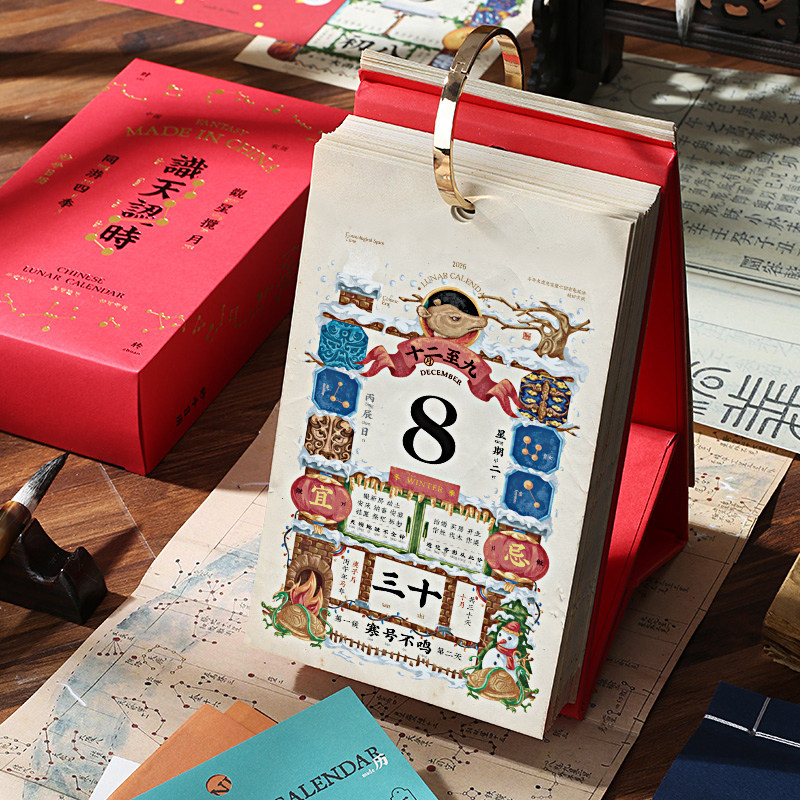 识天认时2026年创意日历妙手回潮台历金属圆环复古桌面摆件精美马年新年礼物古典国潮老黄历手撕翻页农历桌历