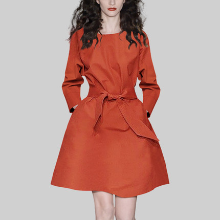 欧美简约大摆A字裙子2025年秋冬新款长袖修身收腰知性优雅连衣裙
