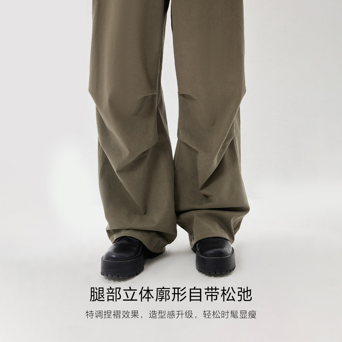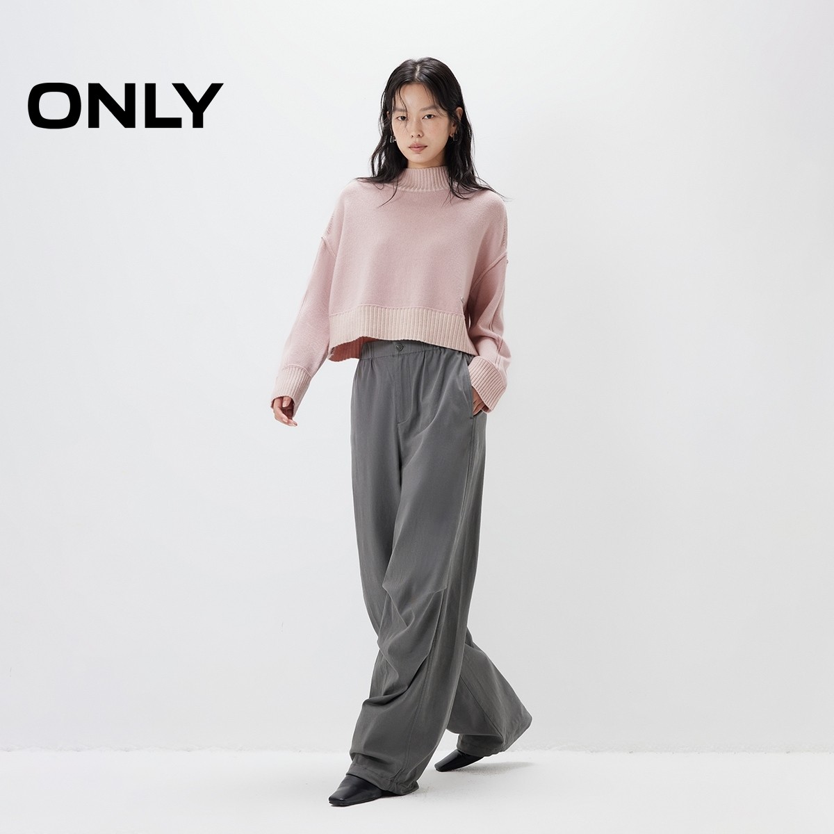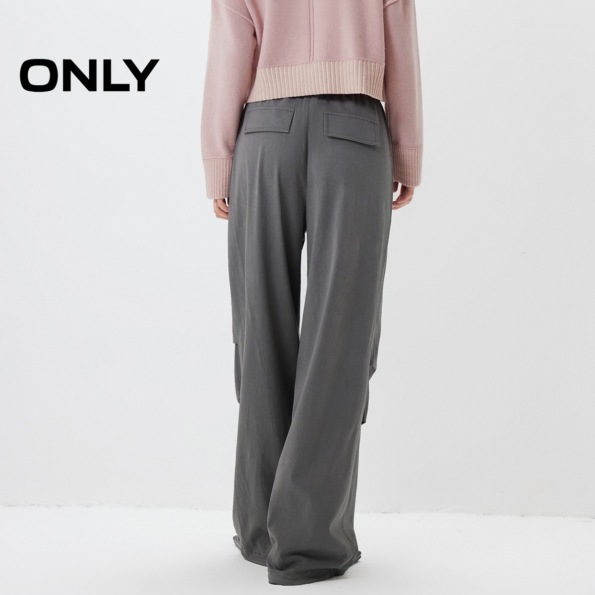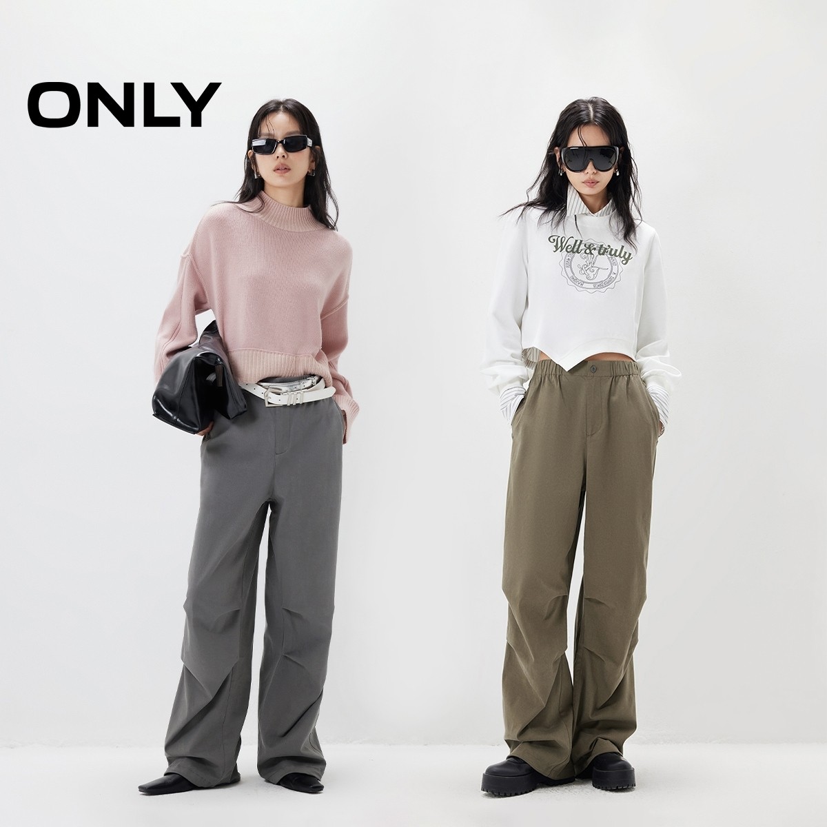 ONLY2025冬季新款裤口弹性抽绳工装风街头高腰宽松直筒裤休闲裤女