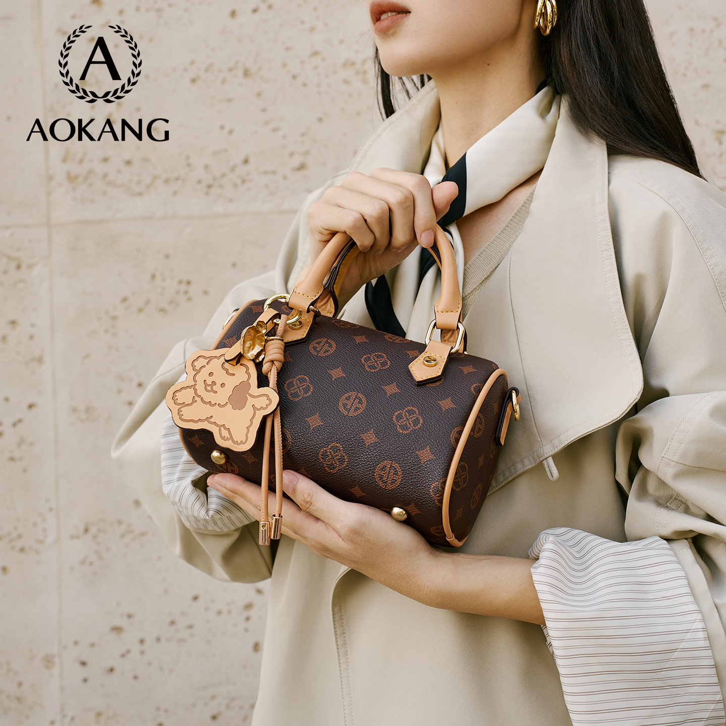 奥康波士顿包2025新款女包大容量手提包老花枕头包高级单肩斜挎包
