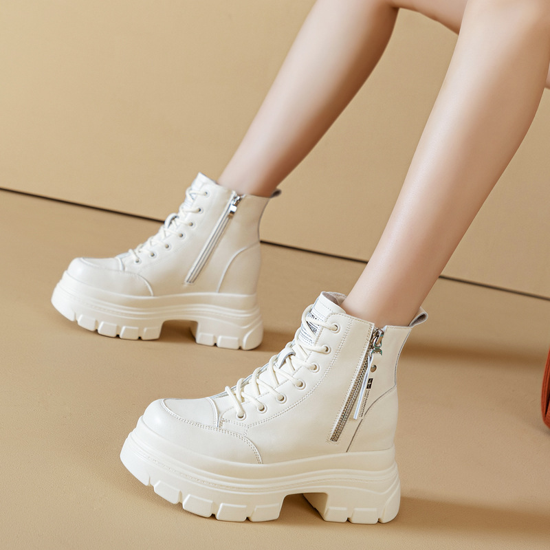 10cm内增高马丁靴女真皮2025秋冬季新款英伦风小个子加绒厚底短靴